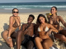 皇马球员维尼修斯巴西度假 美女环绕海滩放松